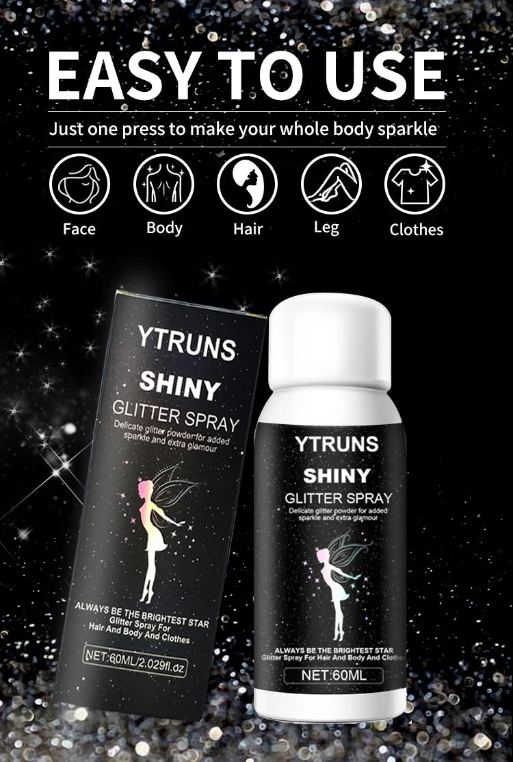 Glitter Spray for Hair and Body is a cosmetic product designed to add instant sparkle and shimmer to both your hair and skin. Perfect for special occasions, parties, or a glamorous night out, it gives a radiant, sparkling effect that catches the light, enhancing your appearance with minimal effort.