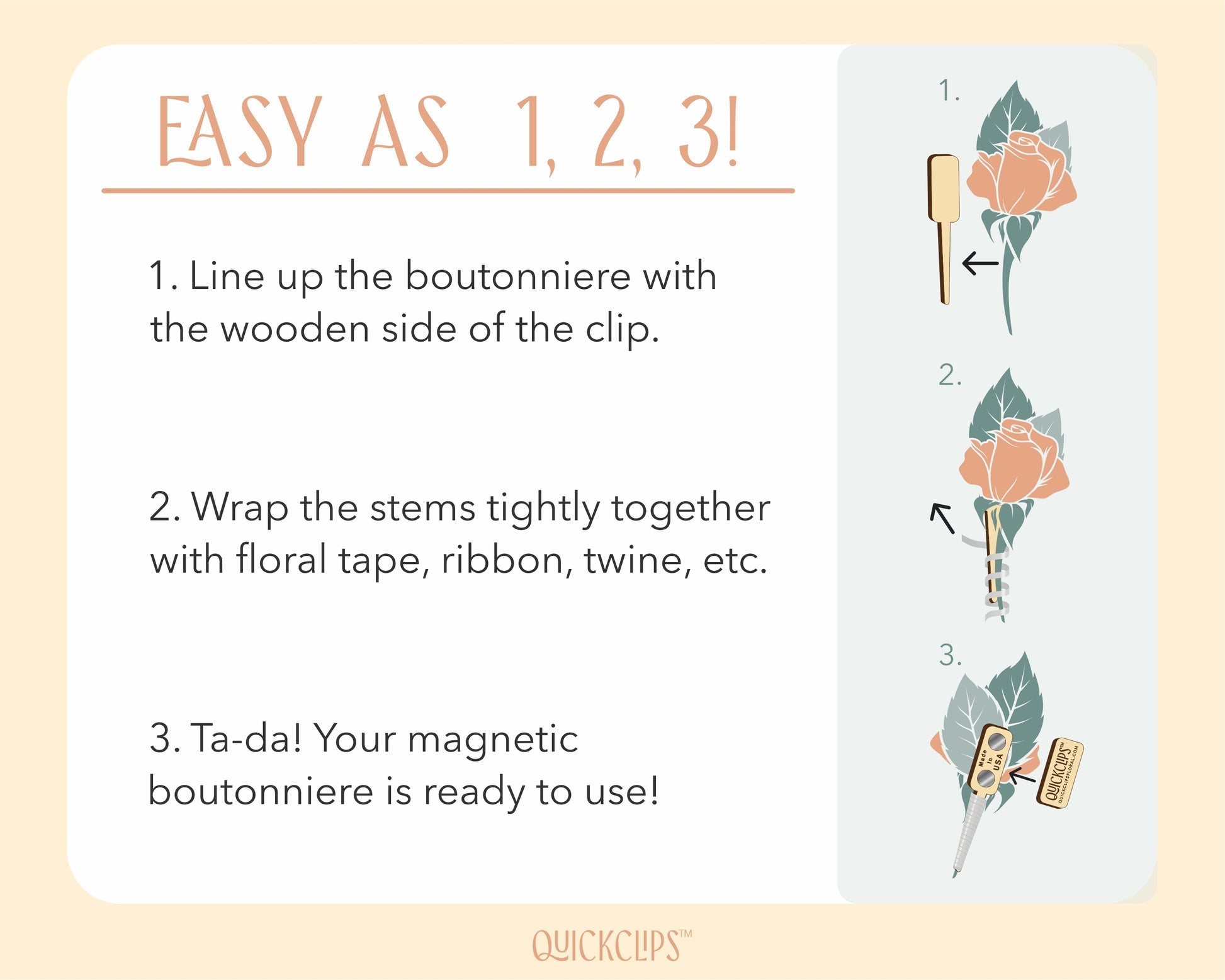 Elevate any lapel with effortless elegance using this mini magnetic boutonniere. Designed for modern convenience, it uses strong, hidden magnets to attach flowers securely—no pins, no holes, no fuss! Perfect for weddings, proms, photoshoots, or adding a touch of charm to everyday wear.