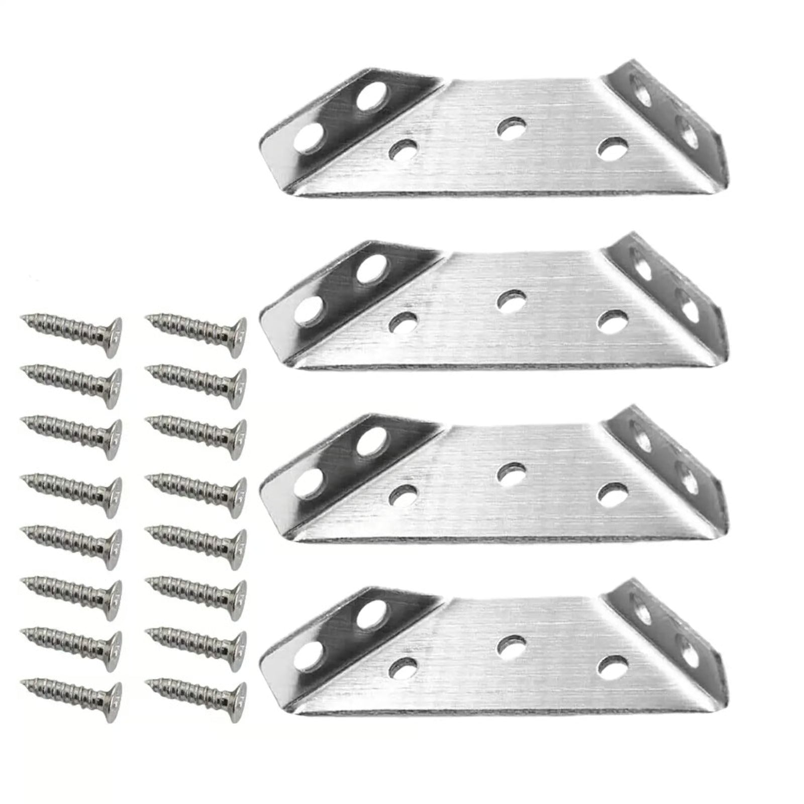 Material: 100% Stainless Steel Finish: Brushed/Silver Size: Available in multiple sizes – check the variant options!Package Includes: 1x Furniture Corner Connector (screws optiona